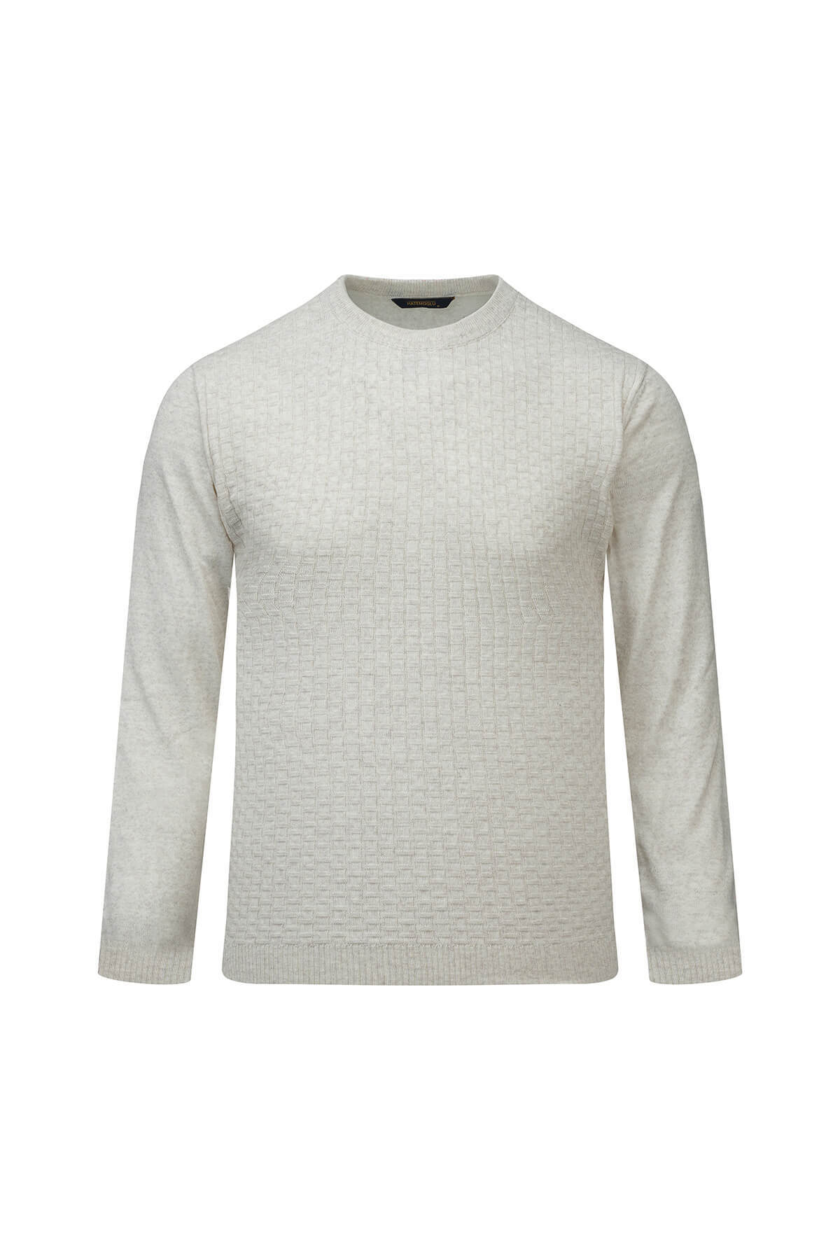 Bej Regular Fit Jakarlı Bisiklet Yaka Yünlü Kazak