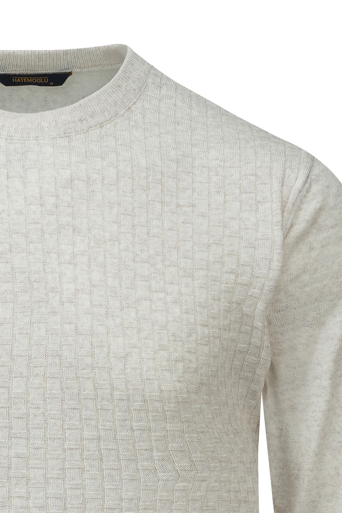 Bej Regular Fit Jakarlı Bisiklet Yaka Yünlü Kazak - 3
