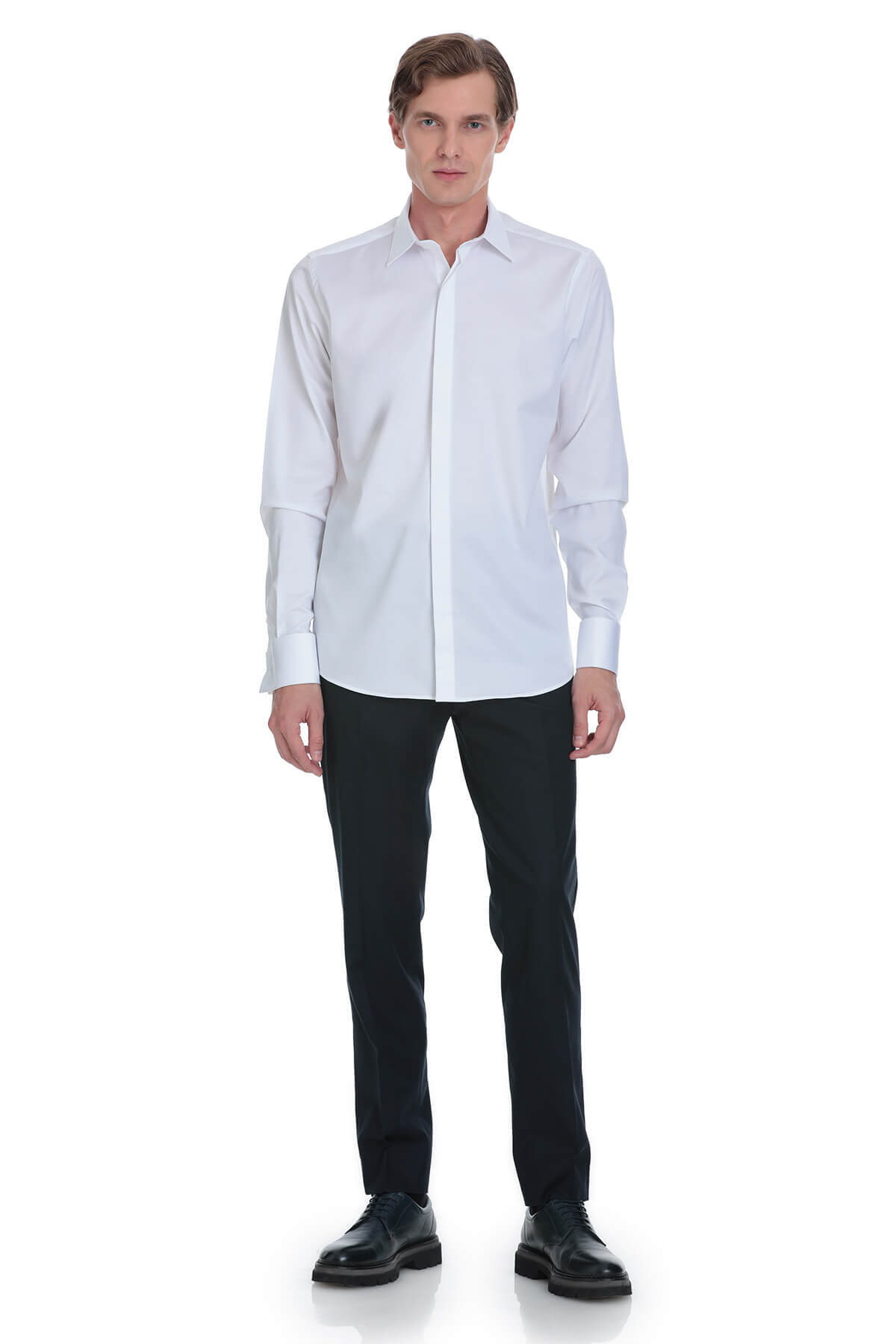 Beyaz Comfort Fit Ata Yaka Pamuklu Damatlık Gömlek