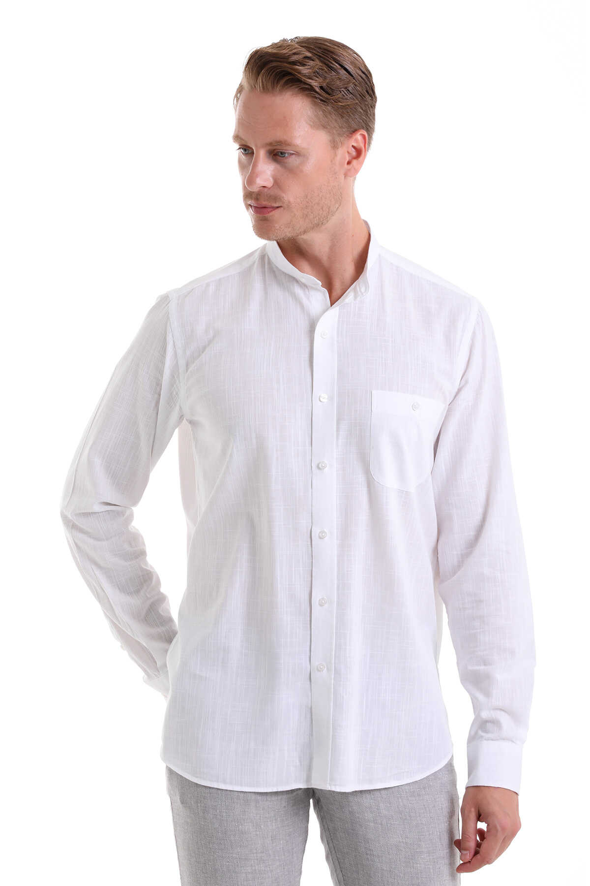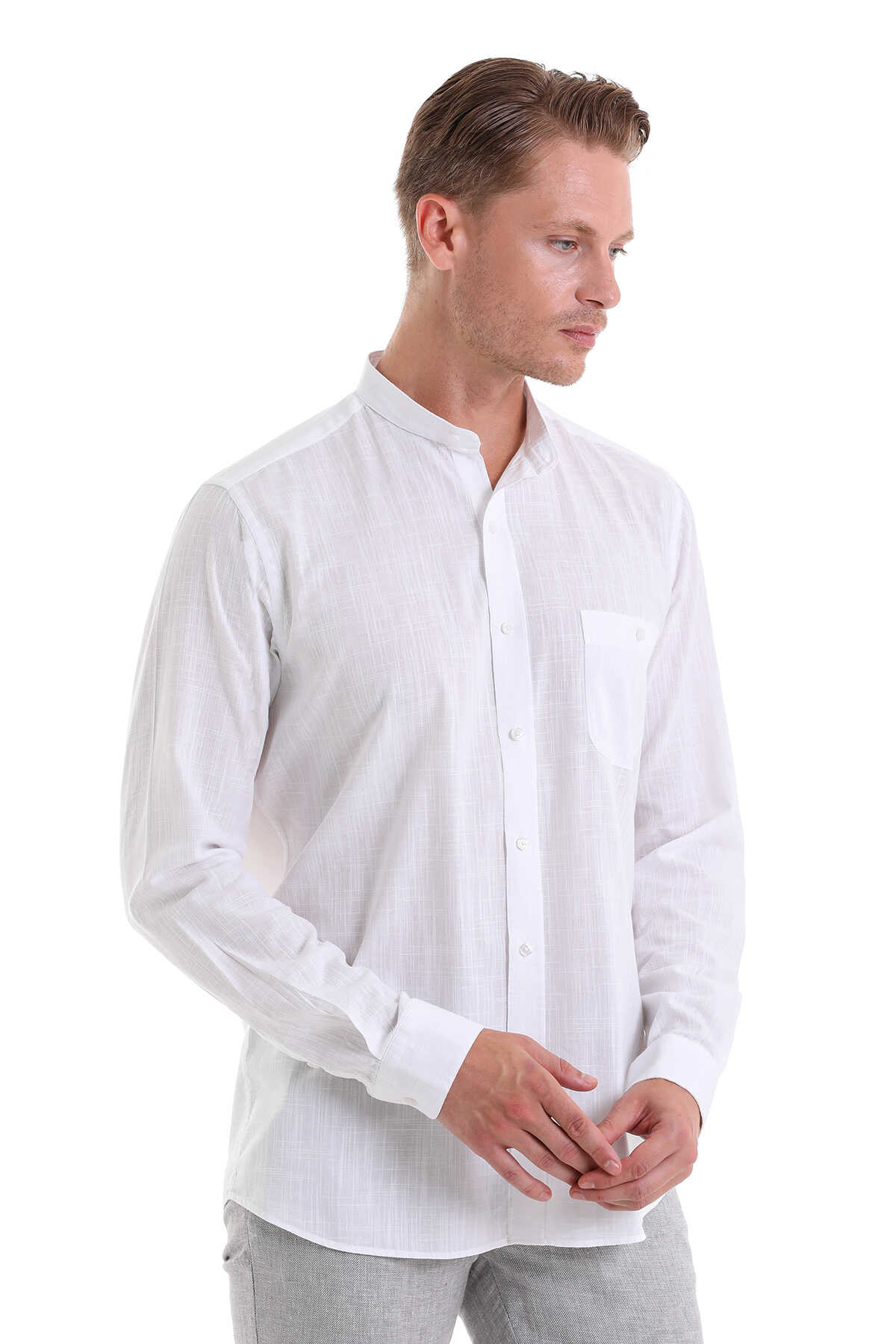 Beyaz Comfort Fit 100% Pamuk Hakim Yaka Uzun Kollu Spor Gömlek