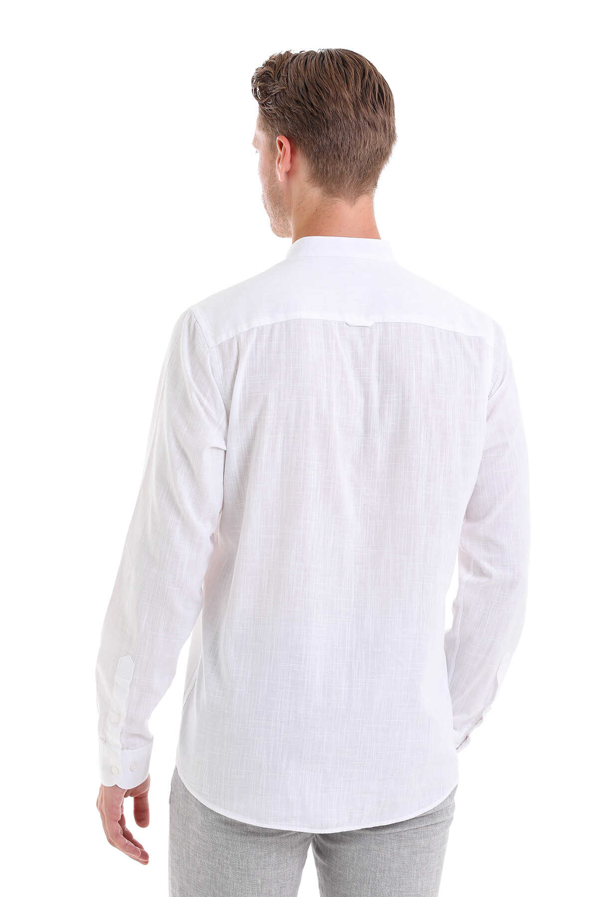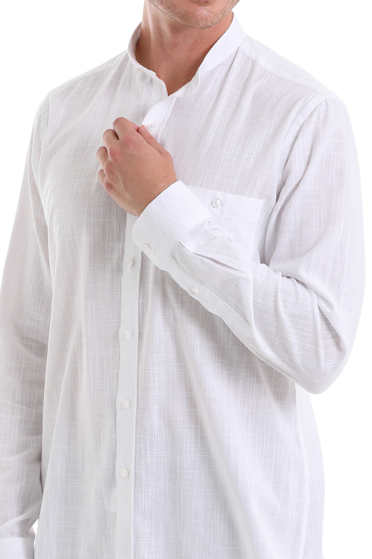Beyaz Comfort Fit 100% Pamuk Hakim Yaka Uzun Kollu Spor Gömlek - 6