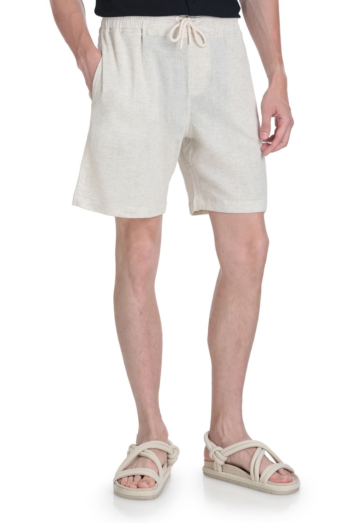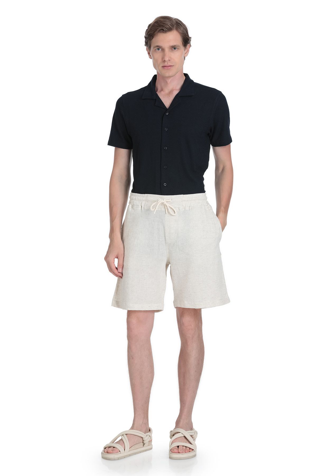 Ekru Regular Fit Pamuklu Basic Örme Yandan Cepli Şort - 5