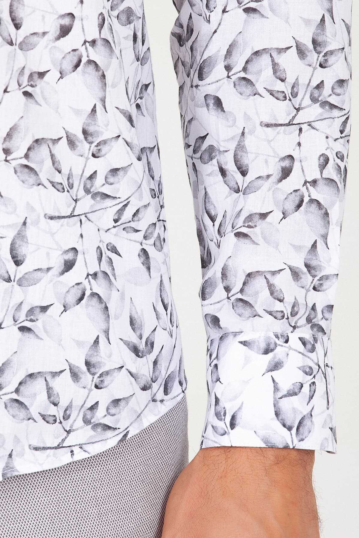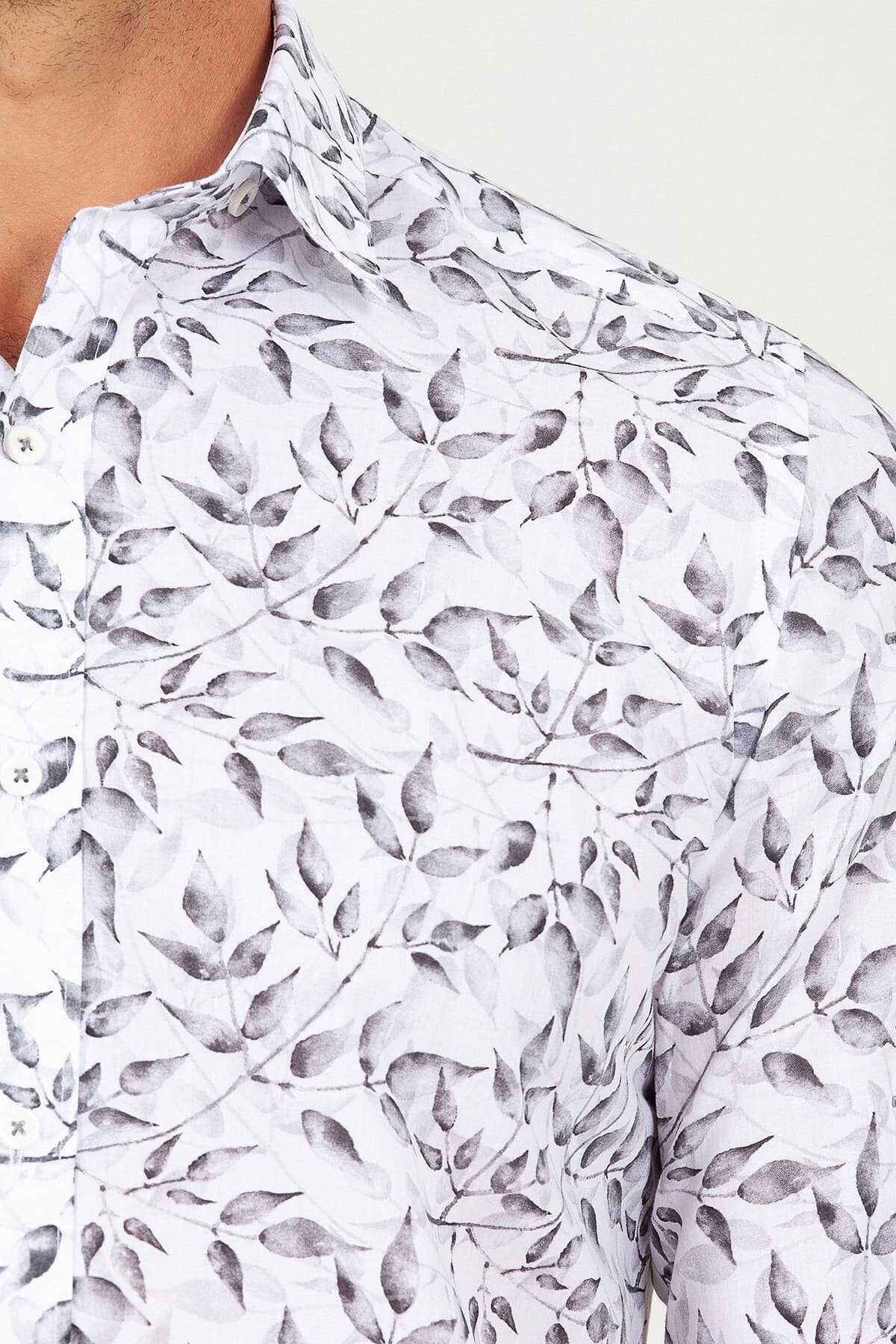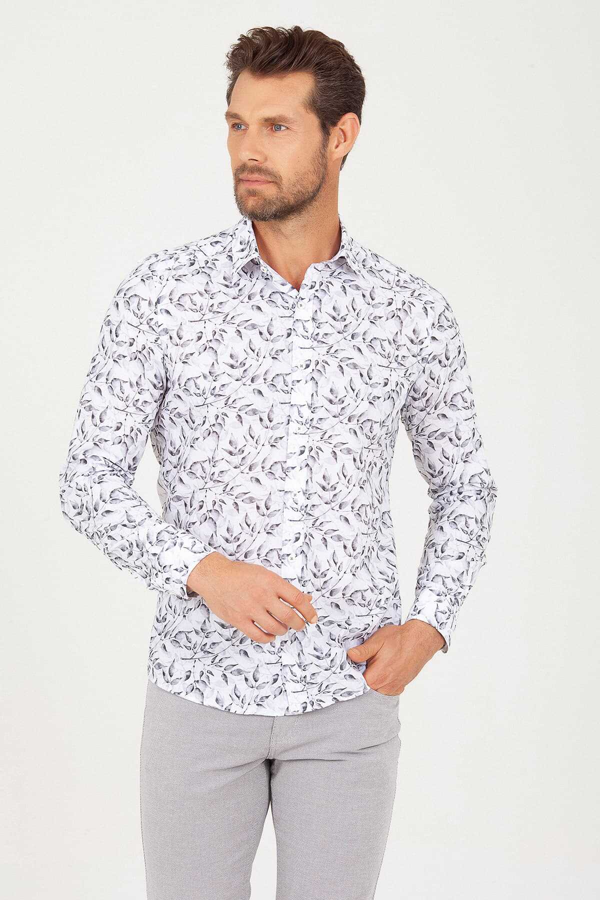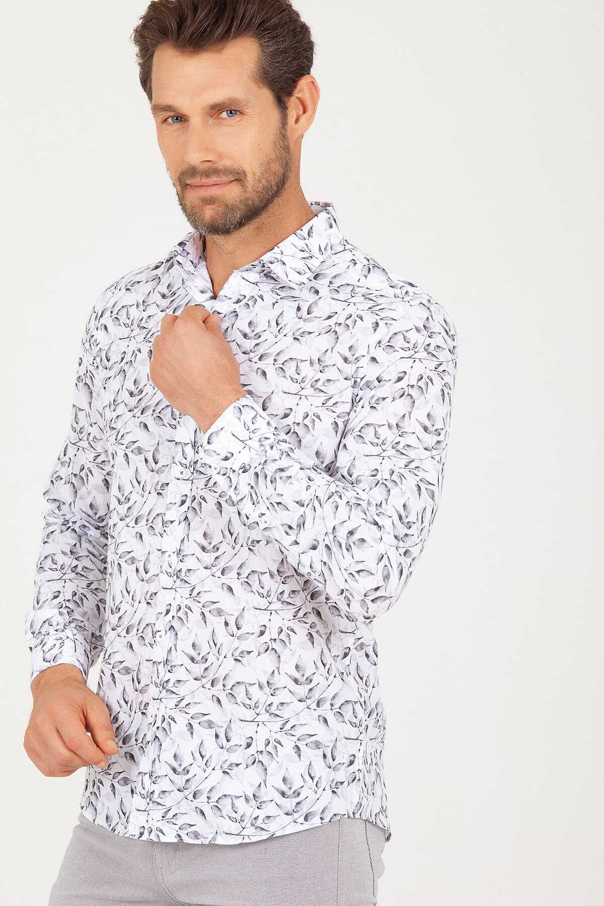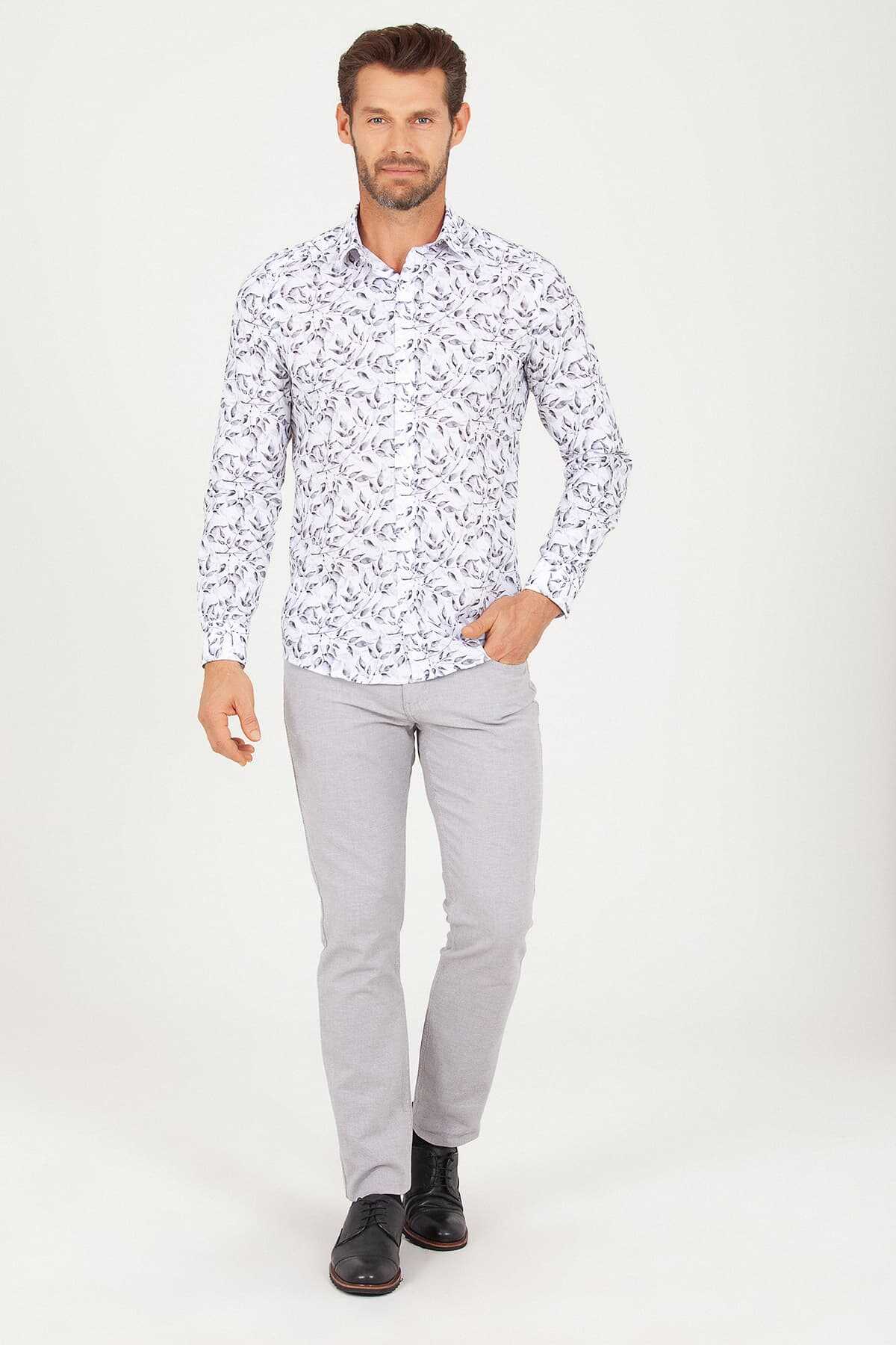 Gri Slim Fit Baskılı 100% Pamuk Uzun Kol Spor Gömlek