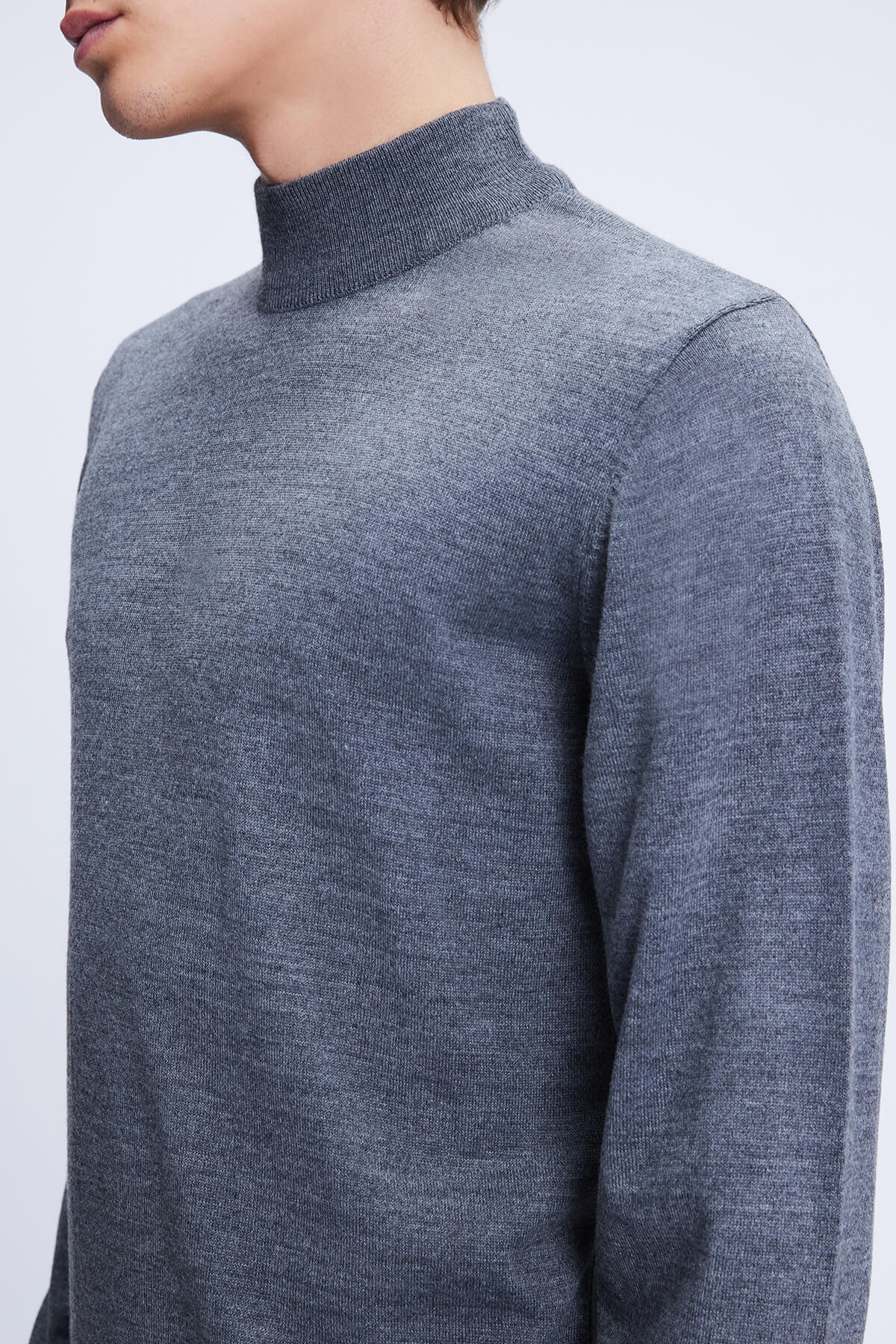 Gri Regular Fit Düz Yarım Balıkçı Yaka Yünlü Triko Kazak - 5
