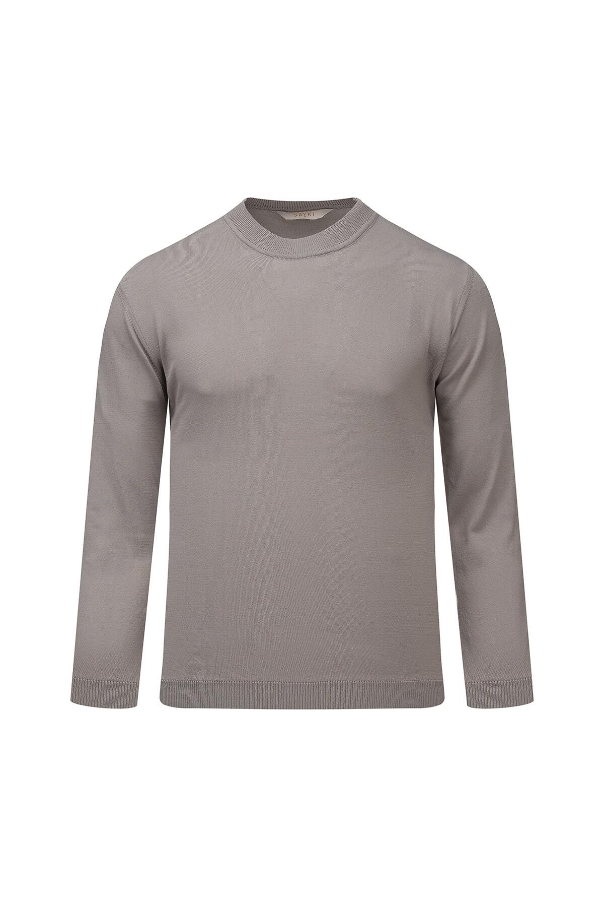 Gri Regular Fit Yarım Balıkçı Yaka Rayon Kazak - 3