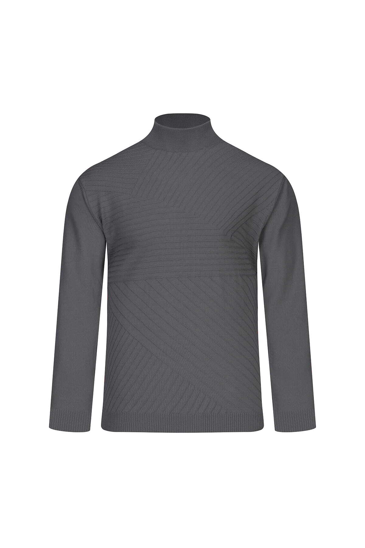 Gri Regular Fit Yarım Balıkçı Yaka Yünlü Kazak
