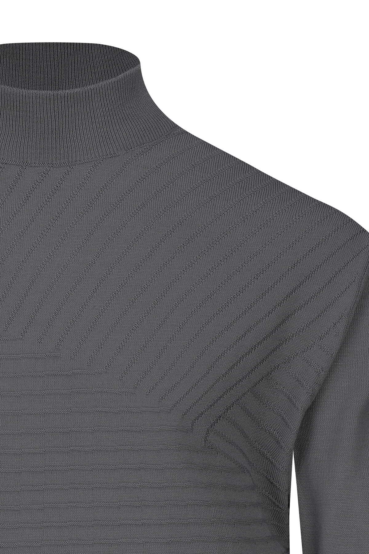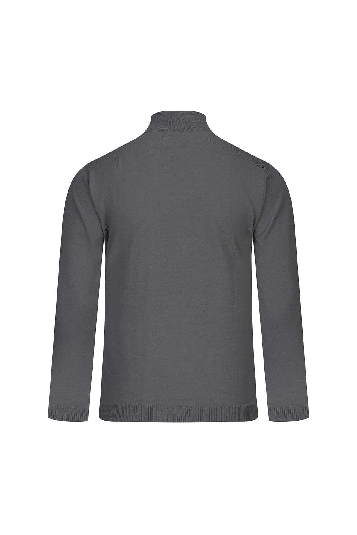 Gri Regular Fit Yarım Balıkçı Yaka Yünlü Kazak - 3