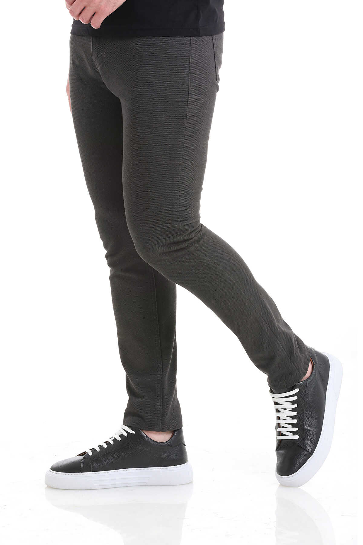 Gri Slim Fit 5 Cep Pamuklu Kanvas Pantolon