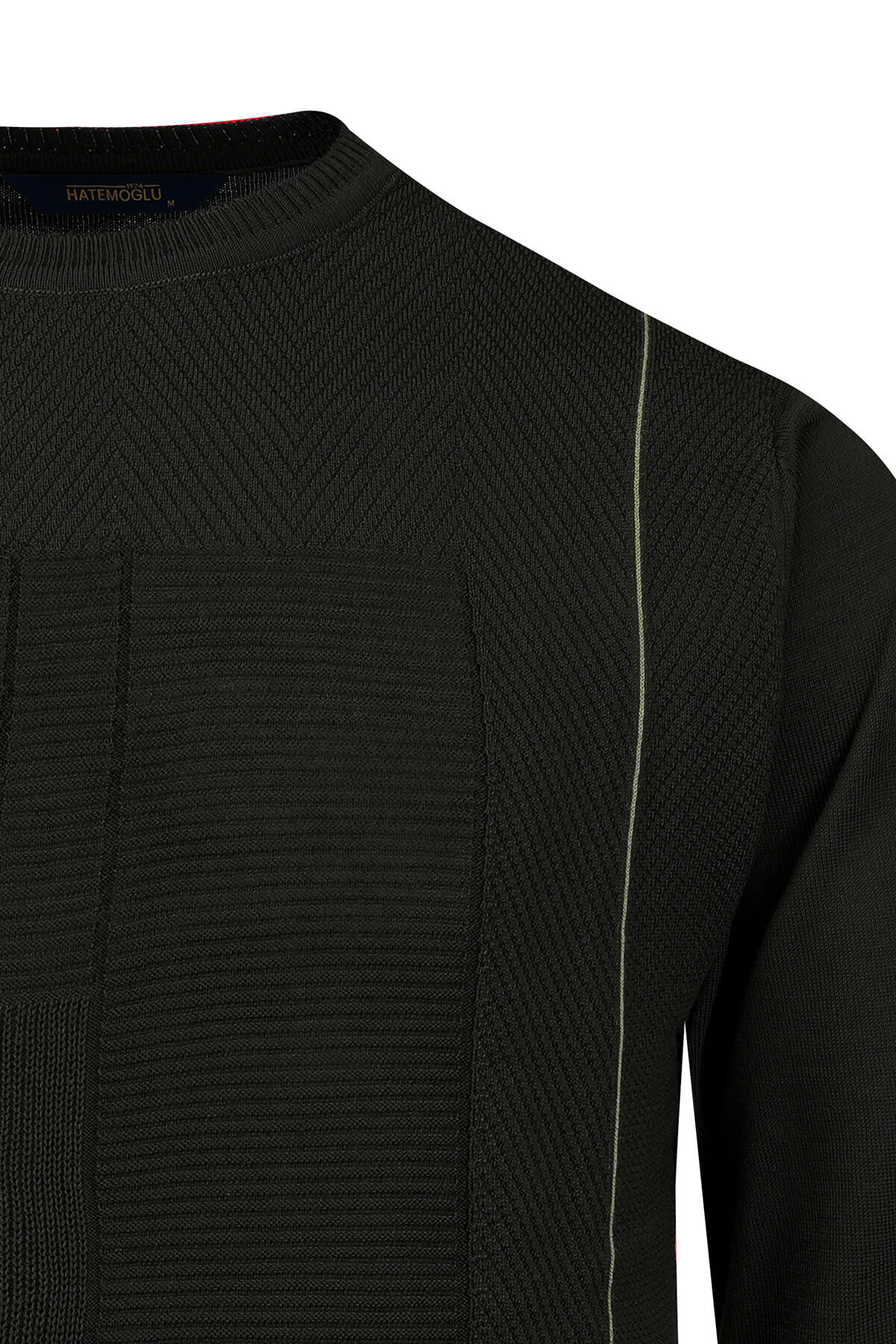 Haki Regular Fit Jakarlı Bisiklet Yaka Yünlü Kazak - 3