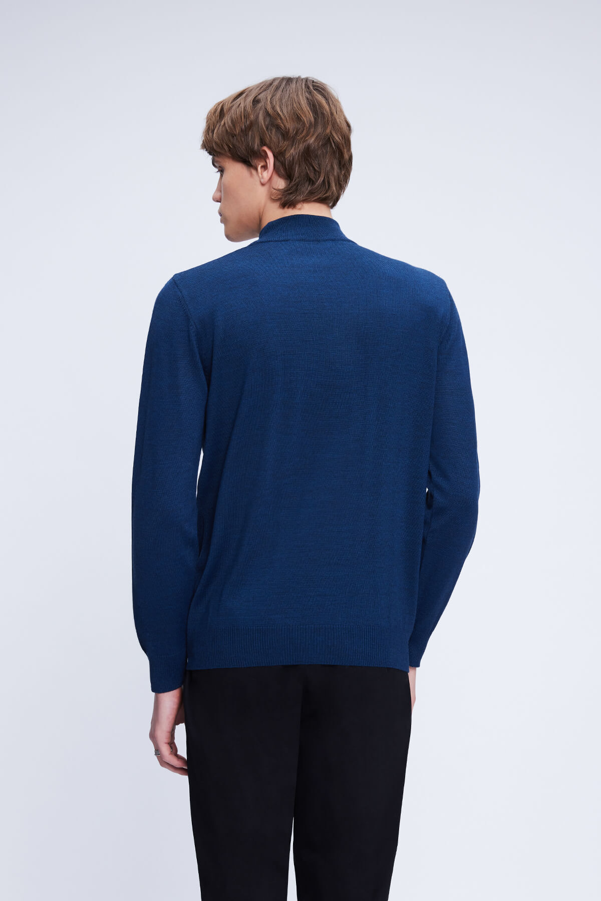 Mavi Regular Fit Düz Yarım Balıkçı Yaka Yünlü Triko Kazak
