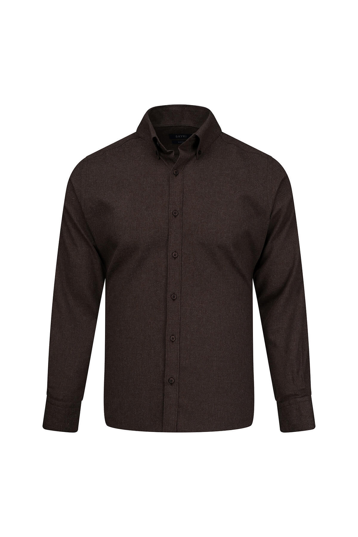 Kahverengi Slim Fit Düğmeli Yaka Pamuklu Uzun Kollu Spor Gömlek