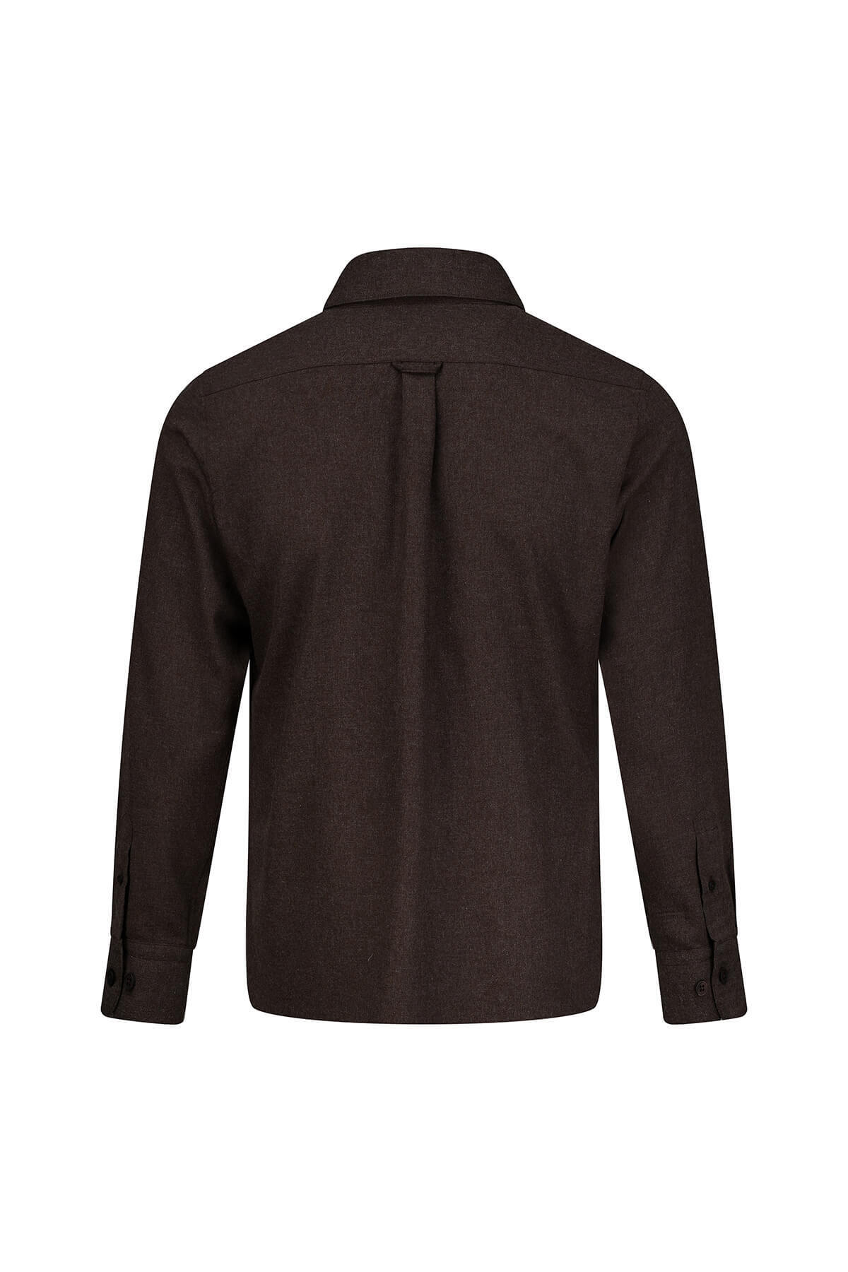 Kahverengi Slim Fit Düğmeli Yaka Pamuklu Uzun Kollu Spor Gömlek - 3