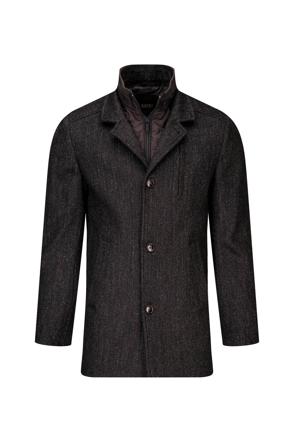 Kahverengi Slim Fit Hakim Yaka İçlikli Kaşe Yünlü Palto