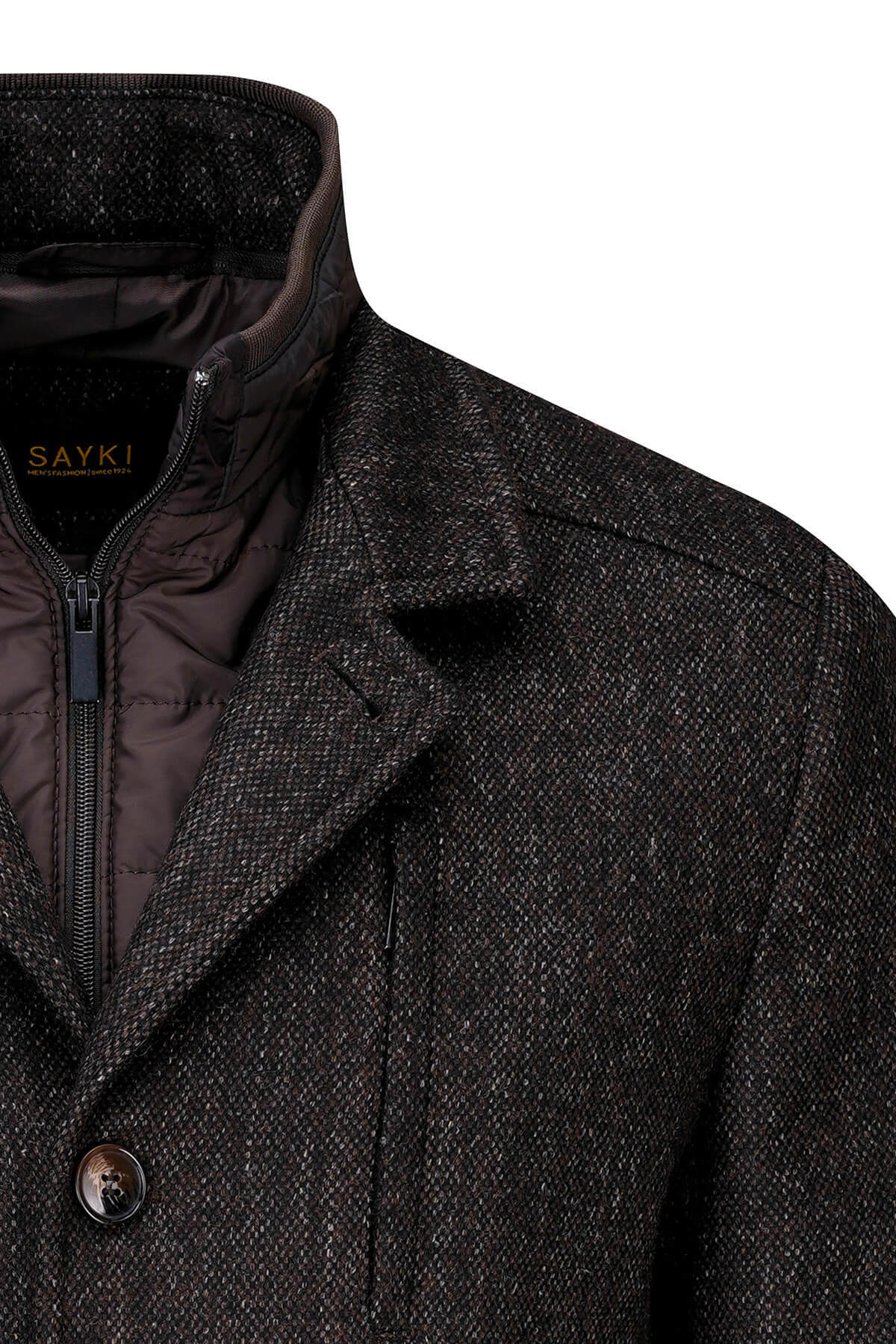 Kahverengi Slim Fit Hakim Yaka İçlikli Kaşe Yünlü Palto - 3