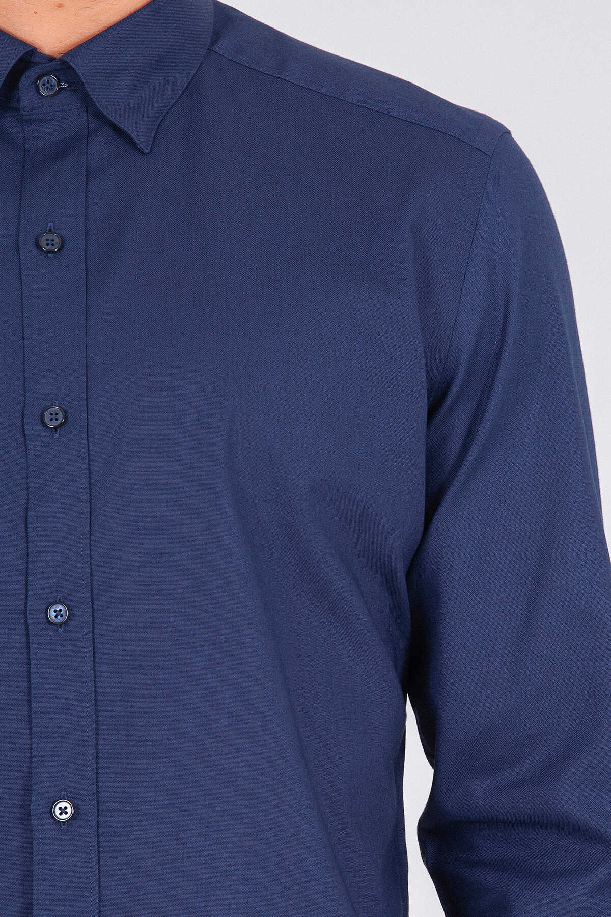 Lacivert Slim Fit 100% Pamuk Uzun Kol Oxford Gömlek