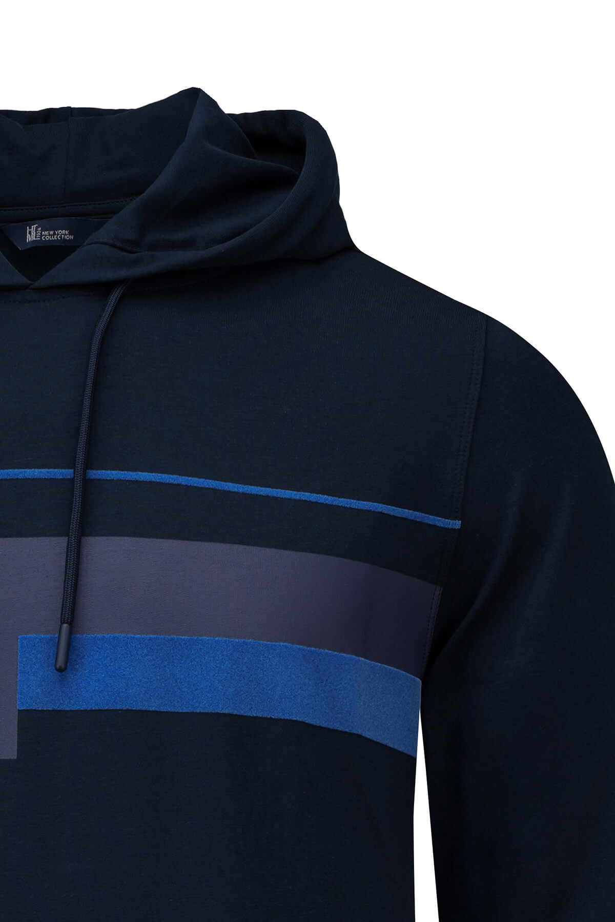 Lacivert Regular Fit Baskılı Kapüşonlu Sweatshirt - 3