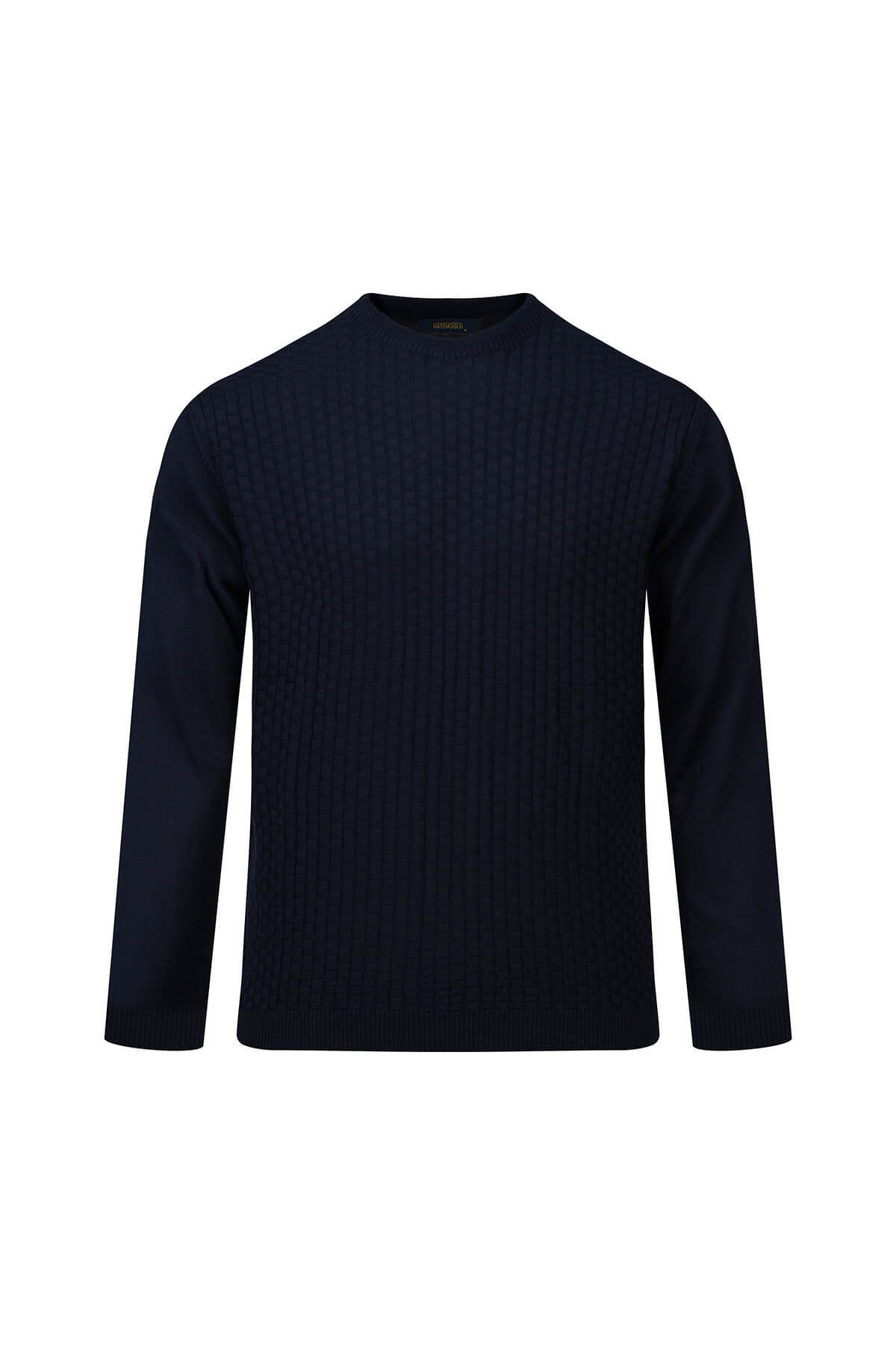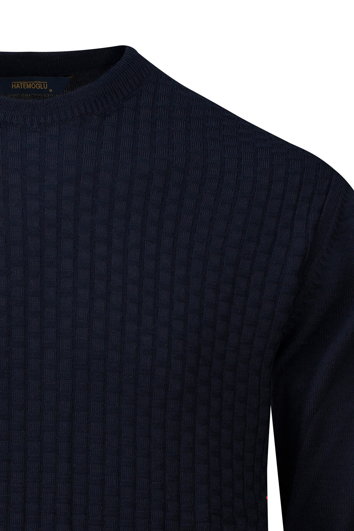 Lacivert Regular Fit Jakarlı Bisiklet Yaka Yünlü Kazak