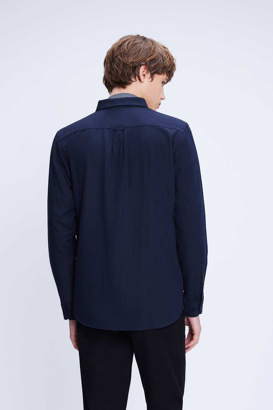 Lacivert Slim Fit Uzun Kol Düğmeli Yaka Flanel Gömlek - 5
