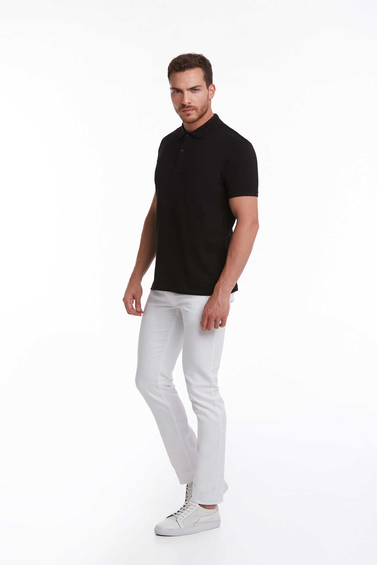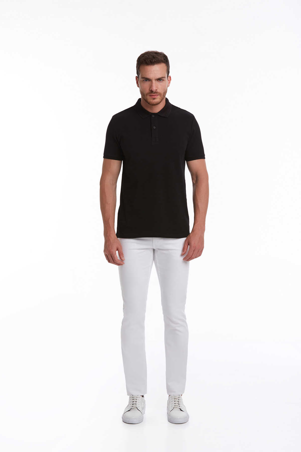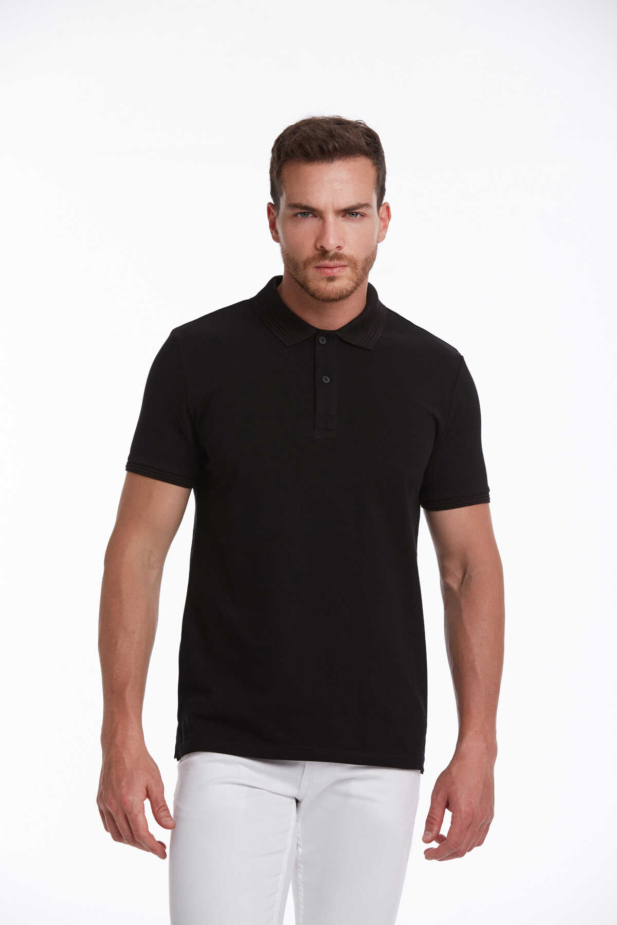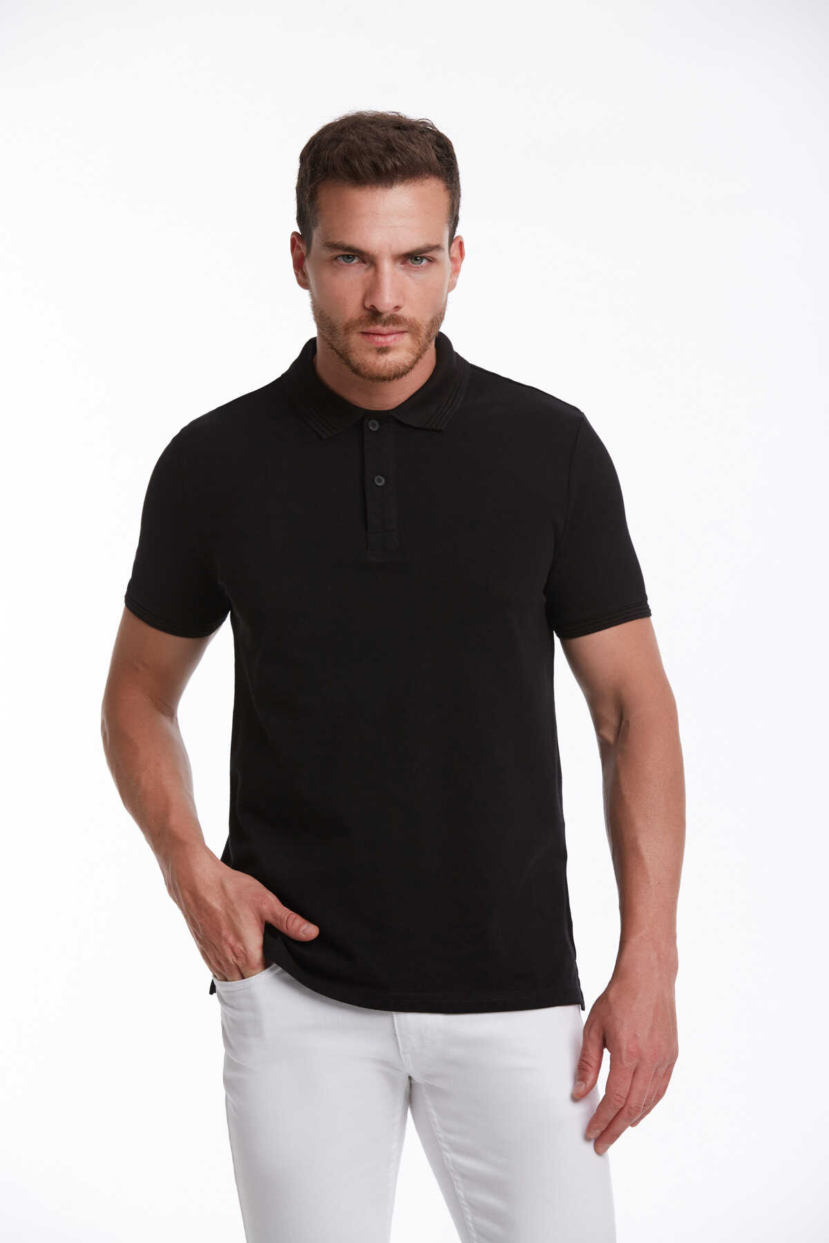Siyah Regular Fit 100% Pamuk Polo Yaka Tişört - 13