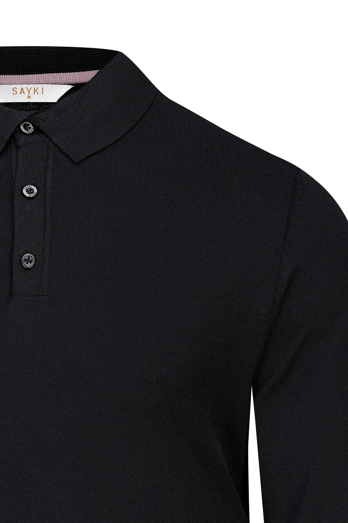 Siyah Regular Fit Polo Yaka Rayon Kazak - 3