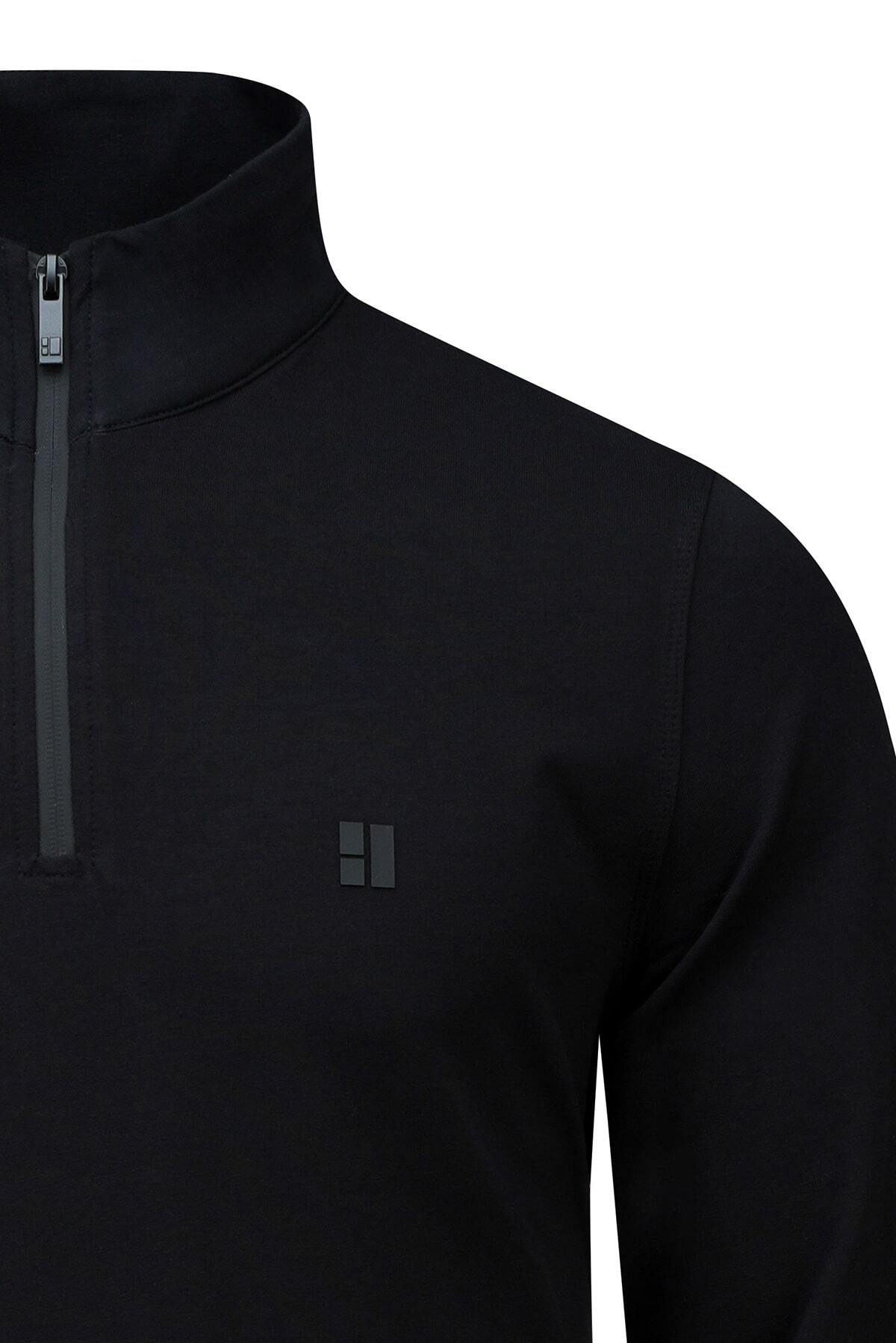 Siyah Regular Fit Yarım Balıkçı Yaka Fermuarlı Sweatshirt