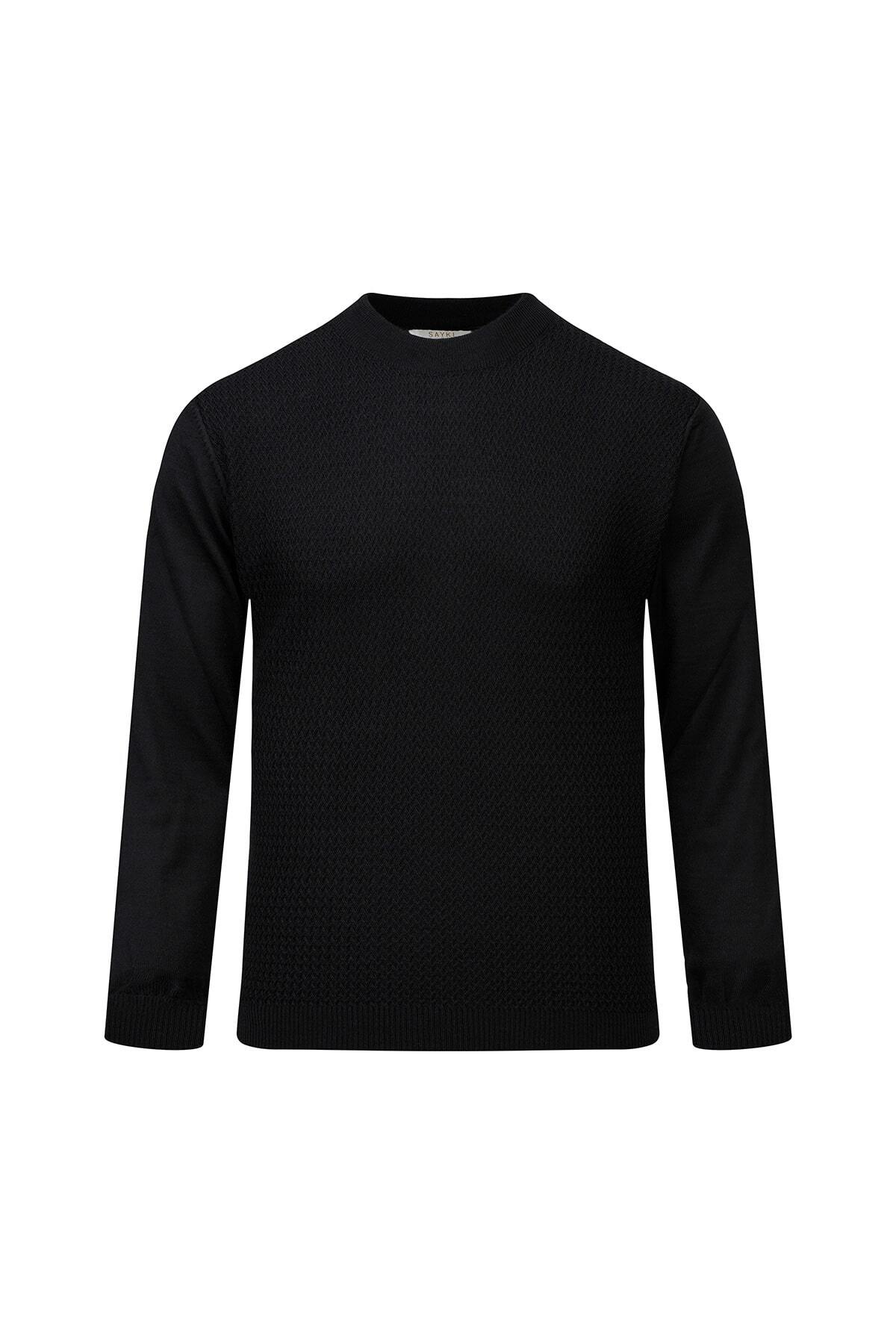 Siyah Regular Fit Yarım Balıkçı Yaka Yünlü Kazak