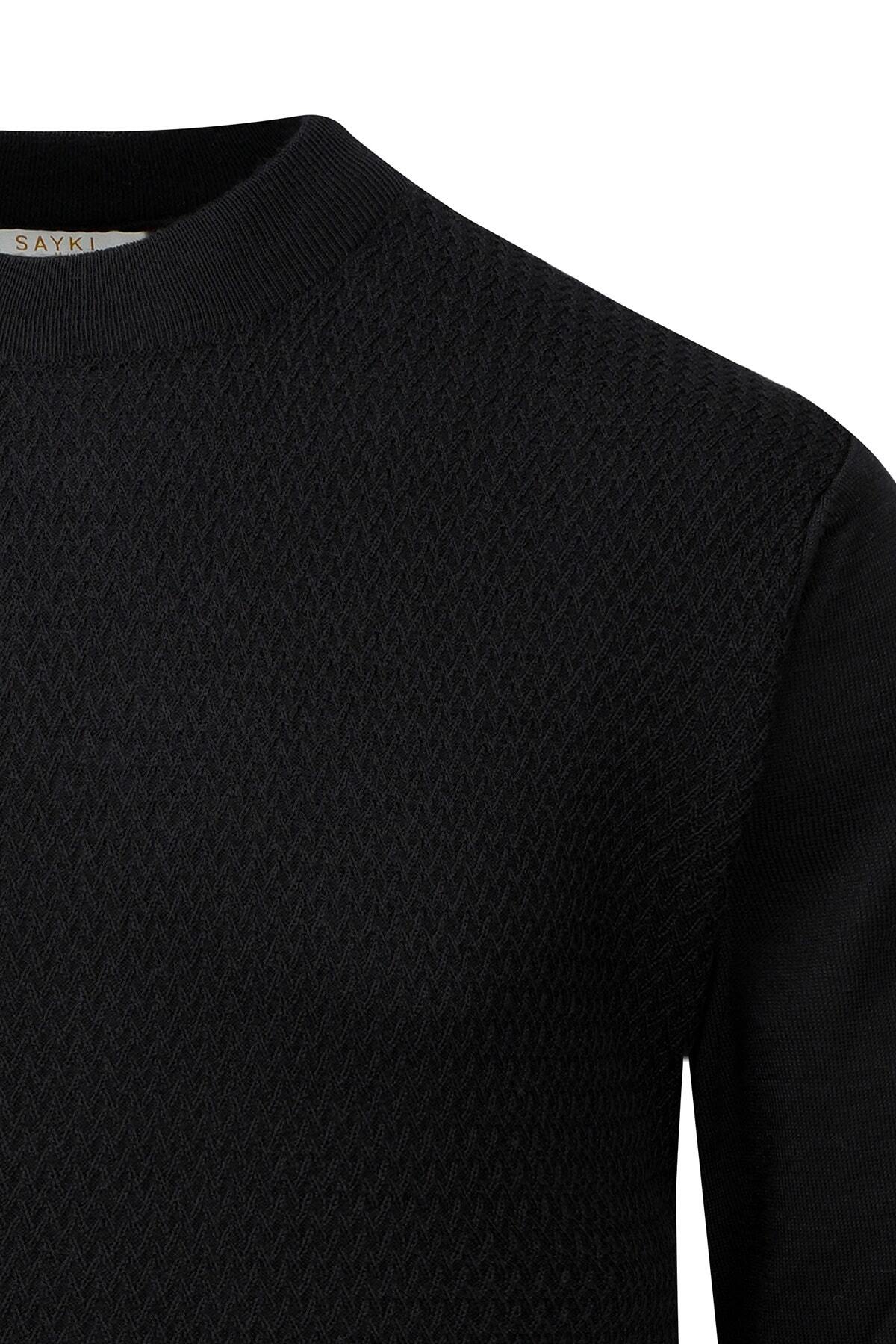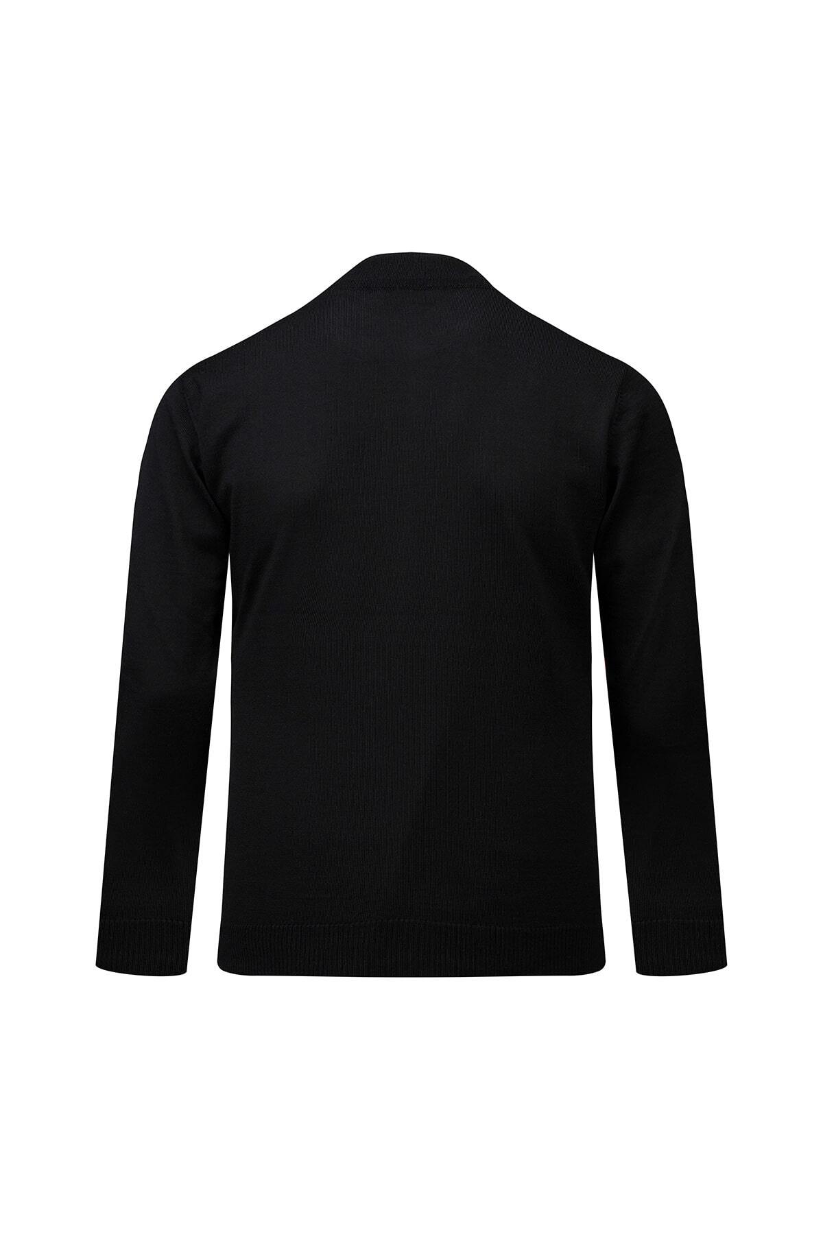 Siyah Regular Fit Yarım Balıkçı Yaka Yünlü Kazak - 3