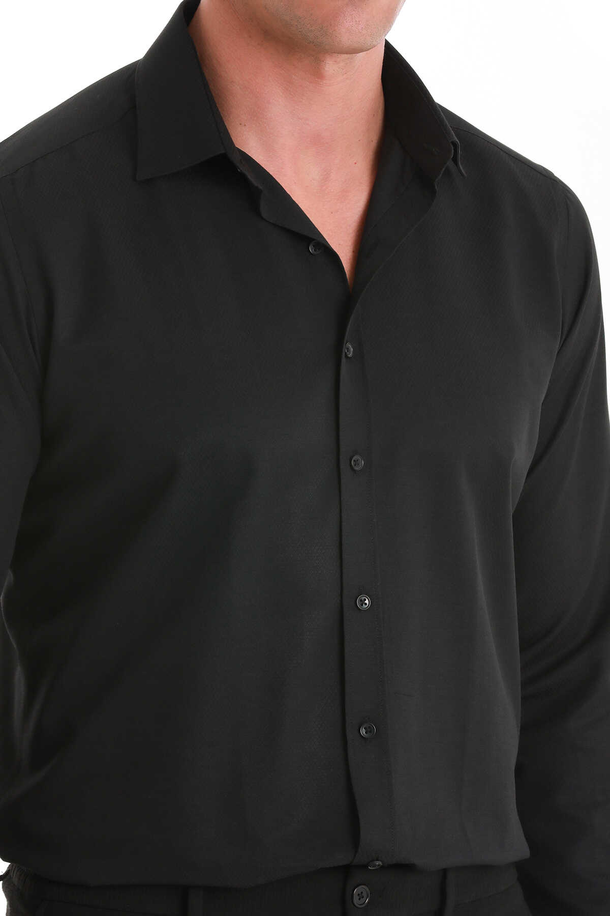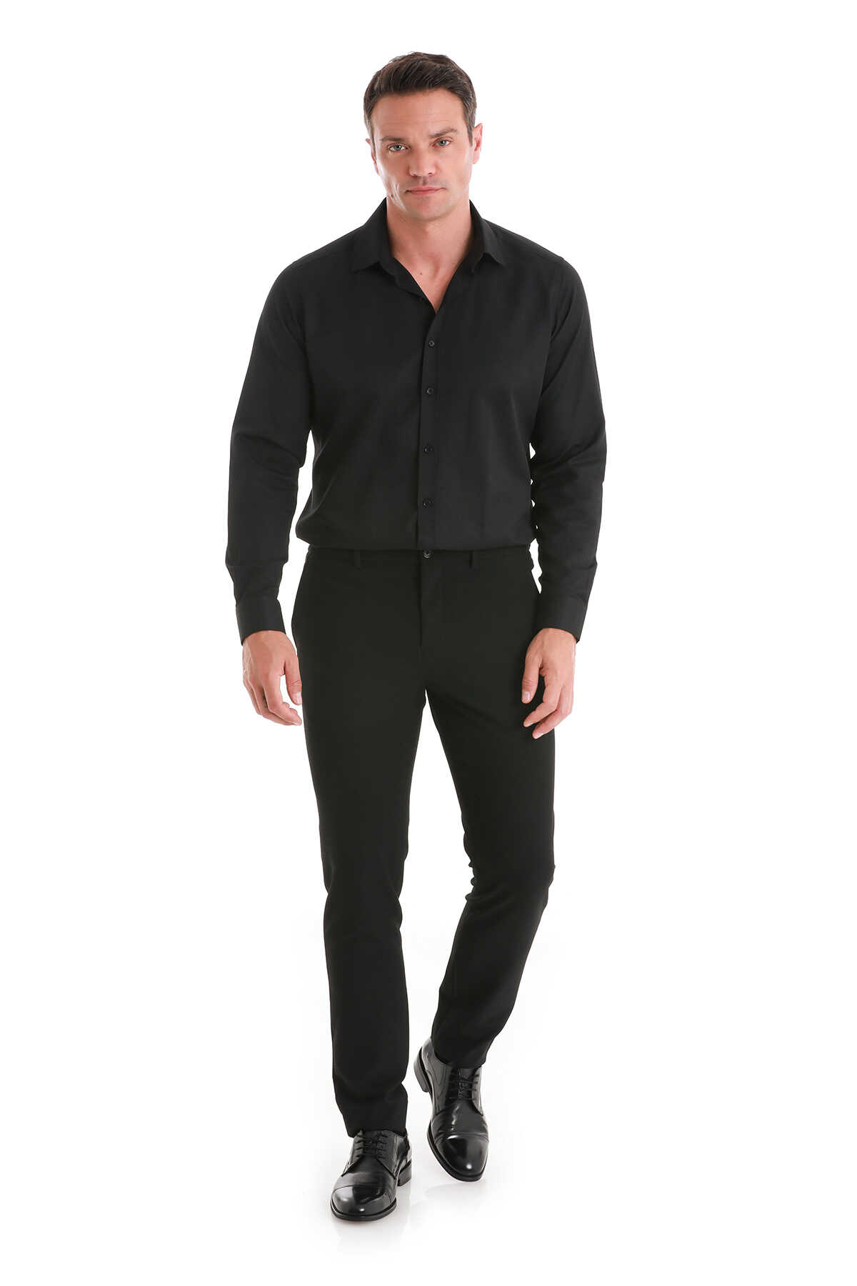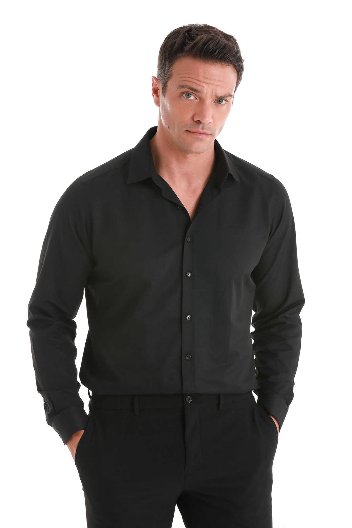 Siyah Slim Fit Slim Yaka Pamuklu Uzun Kollu Gömlek
