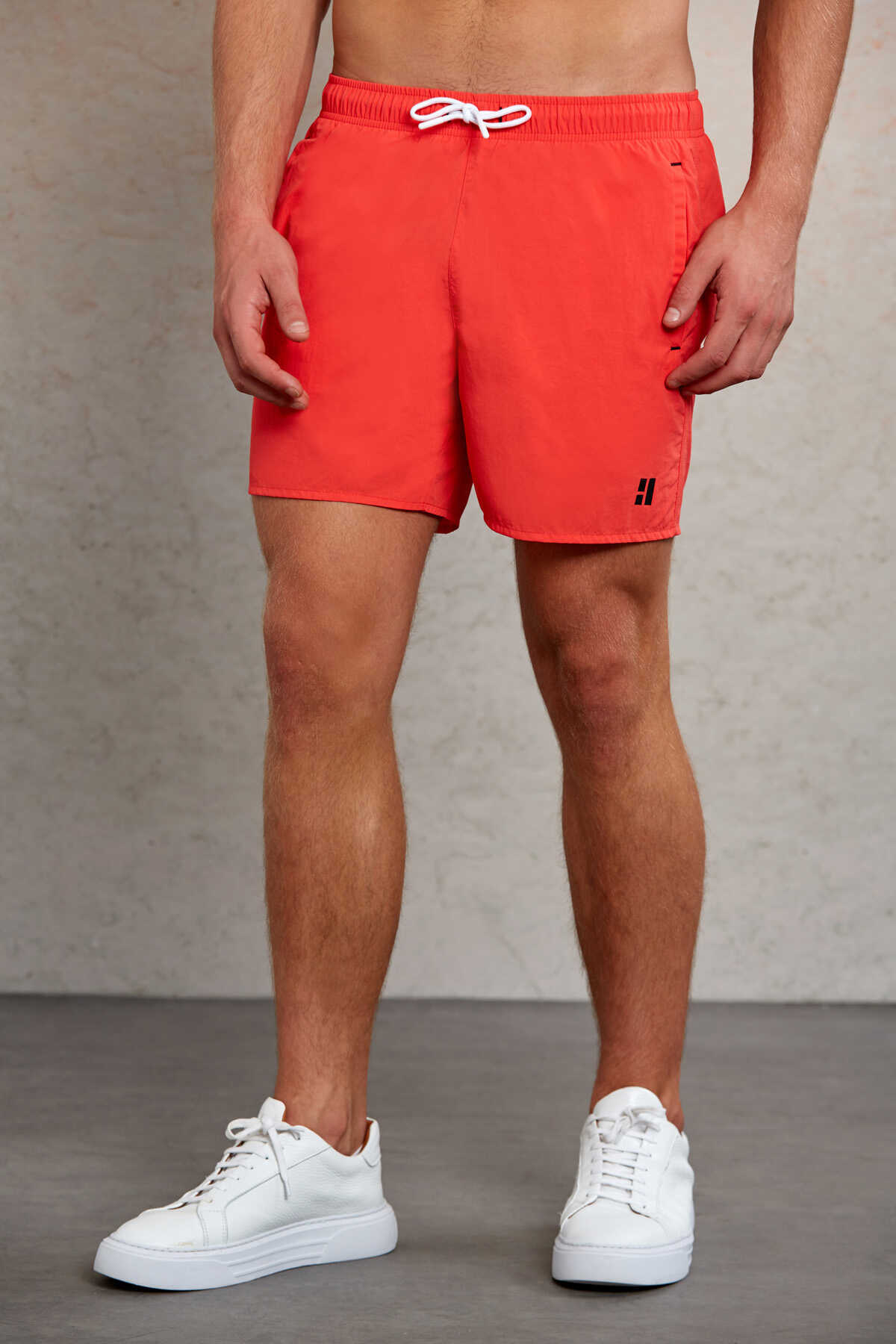Turuncu Dinamik Fit Düz Yandan Cep Deniz Şortu