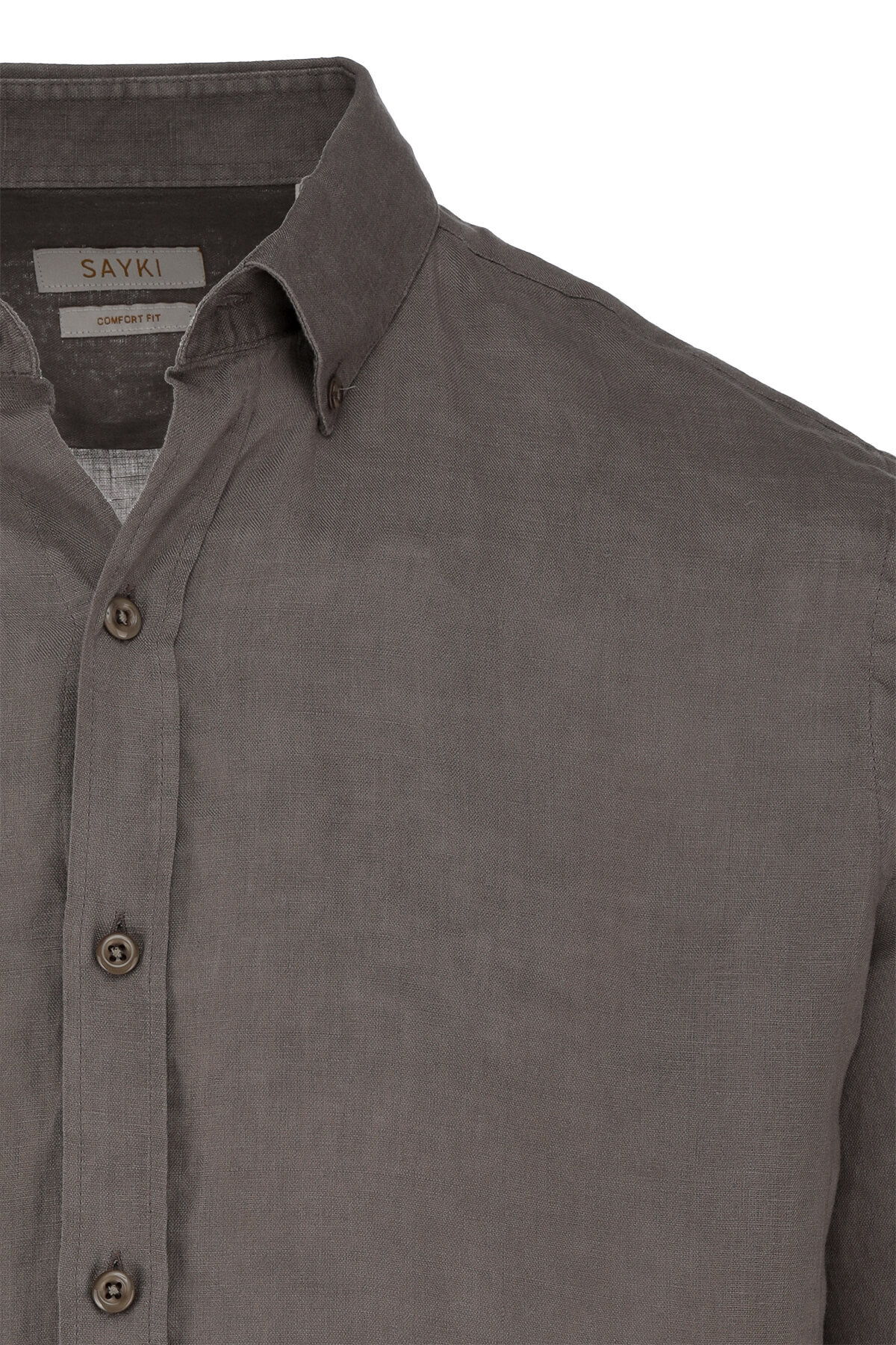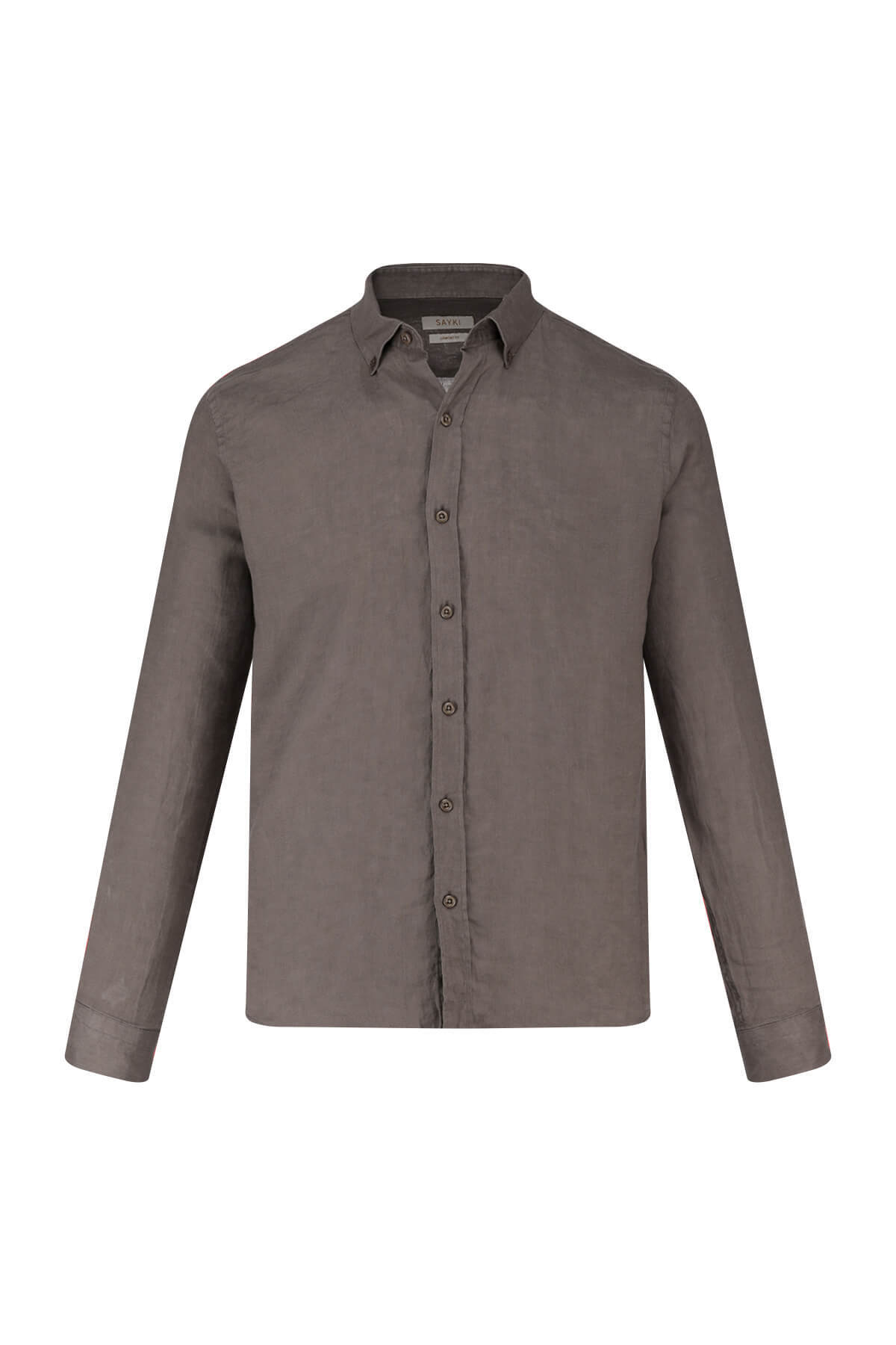 Vizon Comfort Fit 100% Keten Düğmeli Yaka Uzun Kollu Keten Gömlek