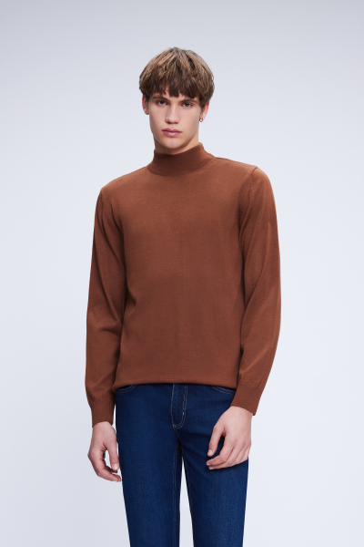 Gri Regular Fit Düz Yarım Balıkçı Yaka Yünlü Triko Kazak