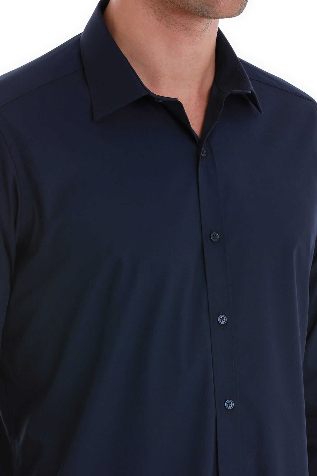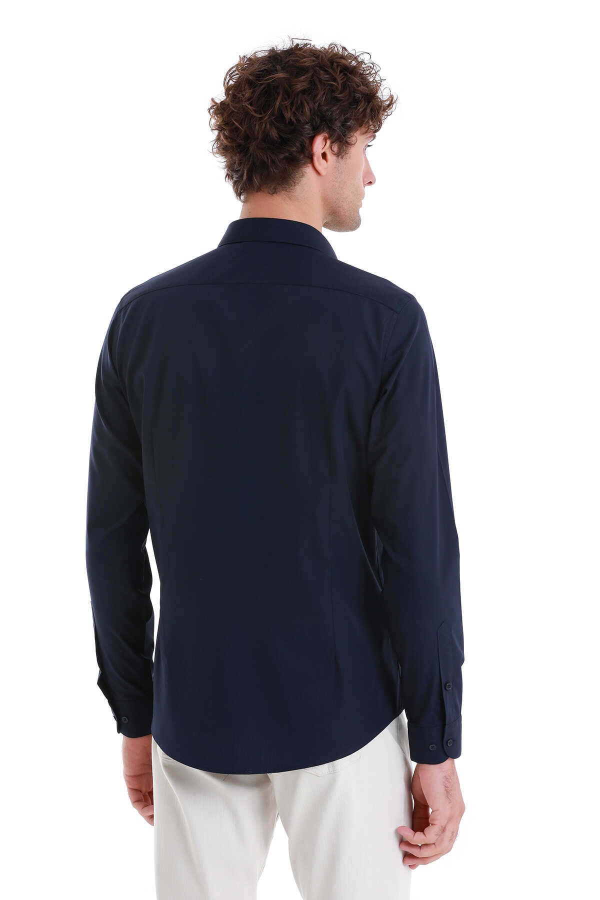 Lacivert Slim Fit Slim Yaka Pamuklu Uzun Kollu Spor Gömlek - 6